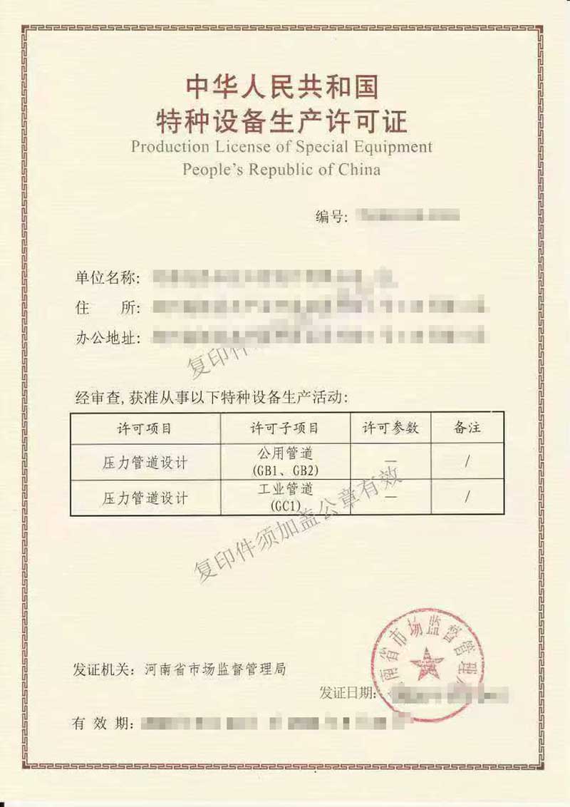 本公司業(yè)務(wù)范圍包括:特種設(shè)備制造許可證、工業(yè)產(chǎn)品生產(chǎn)許可證、特種設(shè)備設(shè)計(jì)許可證、特種設(shè)備安裝改造維修許可證,壓力管道安裝許可證、生產(chǎn)許可證等咨詢服務(wù)。